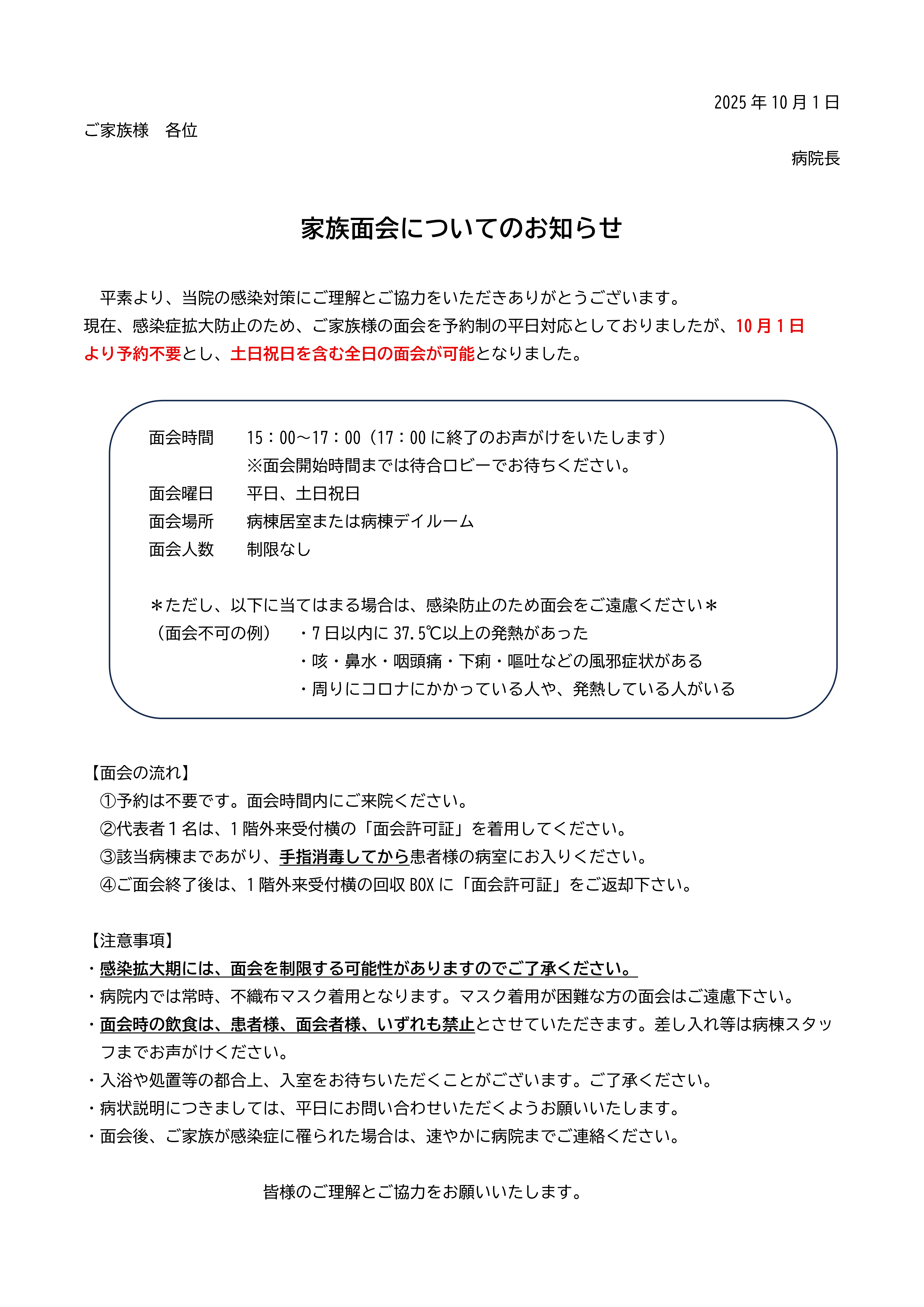 - 令和7年10月土曜日診療担当医のお知らせ。