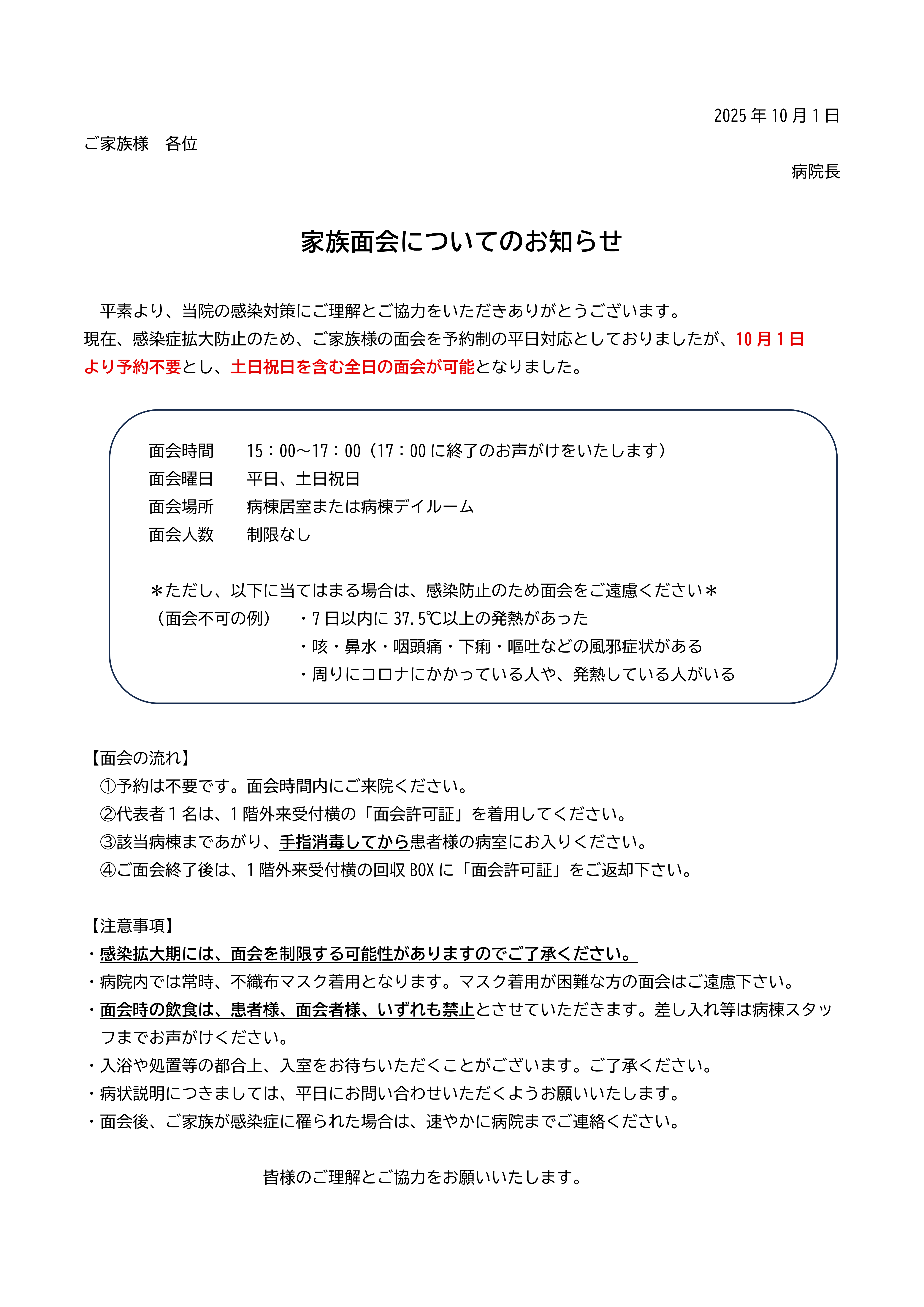 - 令和7年10月土曜日診療担当医のお知らせ。