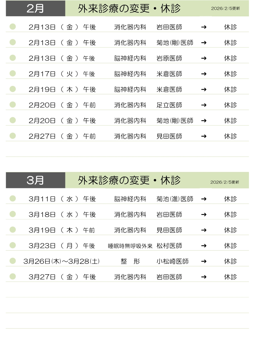 > 【2月・3月】外来診察の変更・休診のお知らせ