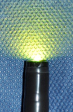 左がNBIで青い光が出ている 右が通常の光 |