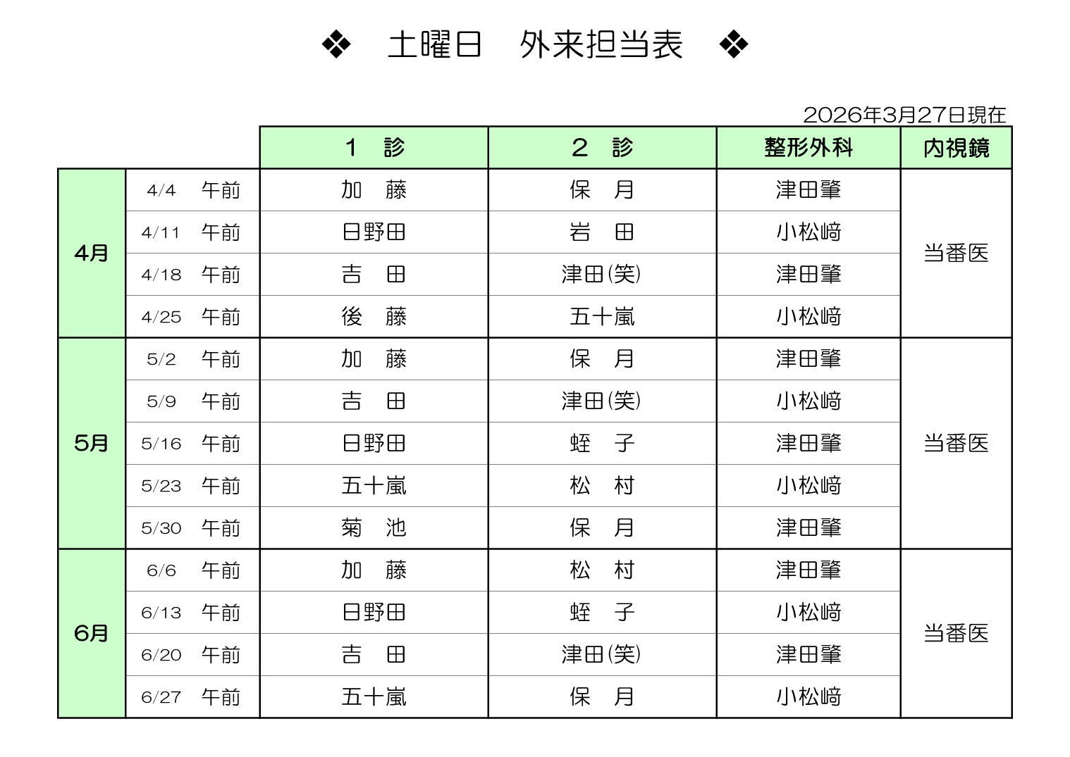 | 午後 | 保月 | 米倉 | 菊池 受付15時まで |
